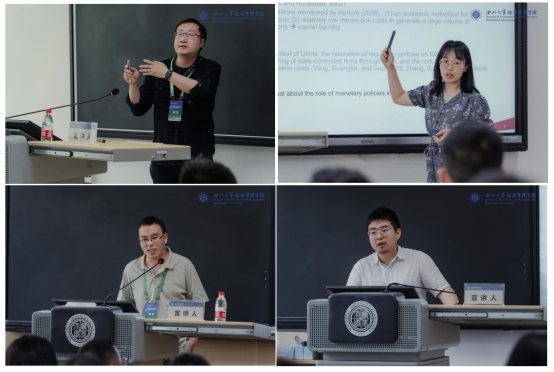 博士生论坛(三)由西北大学石阳副教授主持,上海对外经贸大学冯皓老师点评。中央财经大学的张怡宁作了题为《资管新规、银企关系与房地产企业美元债融资》的报告;西安交通大学的高鹏飞作了题为《沪深港通交易制度的市场稳定效应——基于韧性视角的研究》的报告;厦门大学的方剑宇作了题为《房间里的大象:“大行下沉”加剧了区域性银行风险吗?》的报告。