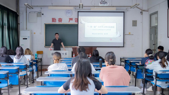 专题讲座环节,美国伊利诺州立大学的张宏霖教授主讲了《中美融合—脱钩的影响》,西北大学哲学学院的袁志伟教授主讲了《“一带一路”与中外文明交流融通——以长安古文明史迹为中心的考察》。