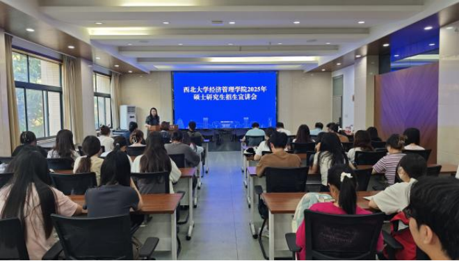 学院院长马莉莉教授介绍了学院基本概况、学科特色,并做2025年硕士研究生招生动员讲话。马莉莉强调时代飞速发展,对人才的要求不断提升,希望同学们把握住升学机会进一步提高自身,学院本硕博贯通的人才培养体系为大家提供了坚实的平台。并对学院今年新增的数字经济专硕学位点进行了介绍,鼓励同学们积极报考。
